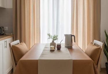 El Combo Tierra Serena está inspirado en la belleza de lo simple: tonos cálidos, tejidos naturales y una atmósfera acogedora que transforma cualquier comedor en un refugio de serenidad.