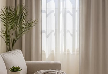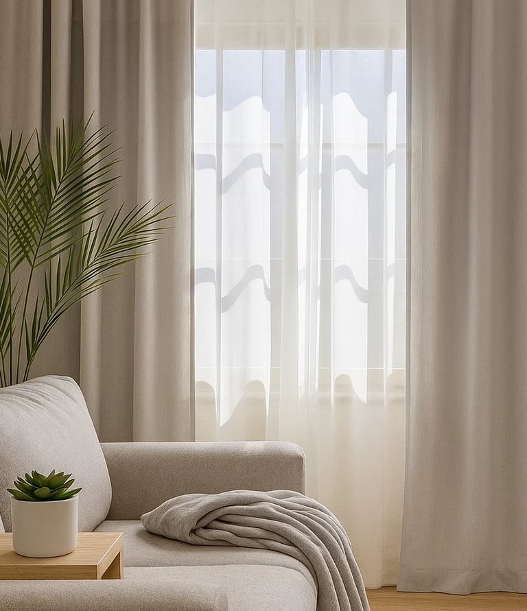 Cortinas voile estampado blancas, permiten el ingreso de luz justa para dar calidez a este invierno frío